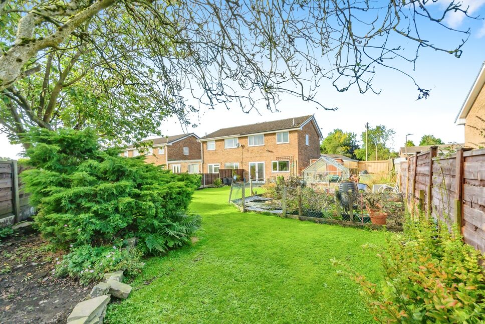To the front of the property there is off road parking for several vehicles leading to a detached garage. The property benefits from occupying a corner plot and is not over looked to the rear. To the rear of the property there is a paved area leading to a lawn area boarded by mature trees and shrubs. There is also a vegetable patch with greenhouse, outside tap, shed, gated side access.