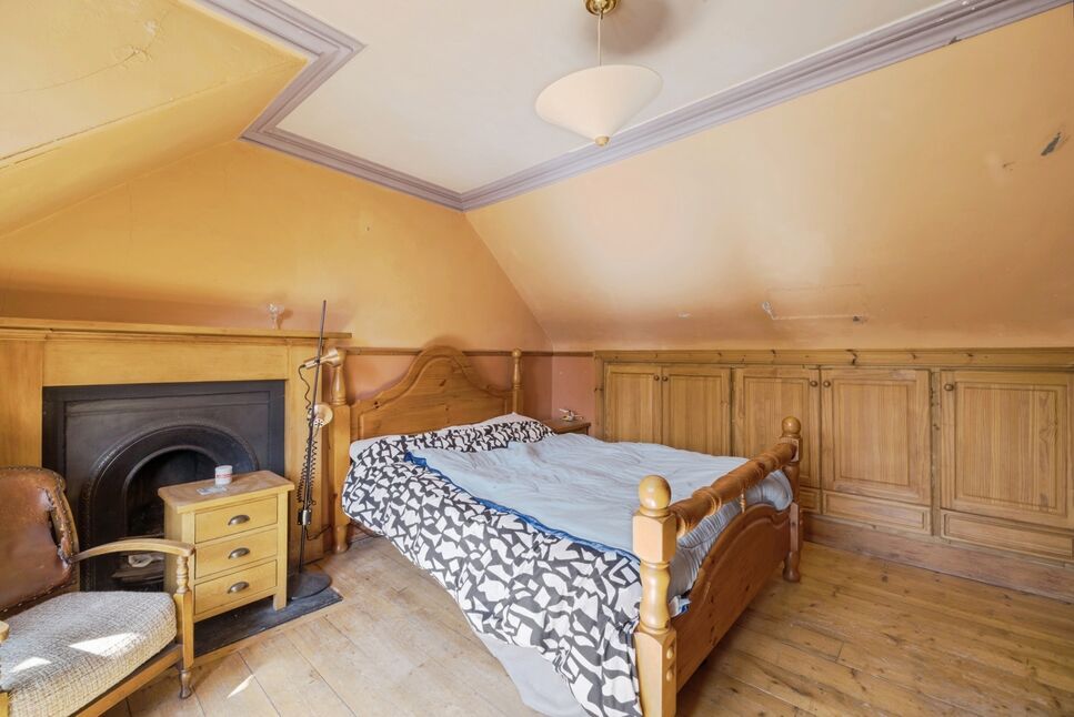 This generously sized bright double bedroom features a large window that allows natural light to flood the space, and an original fireplace adds a charming period touch. The room benefits from built-in storage, while still leaving plenty of room for additional furnishings.