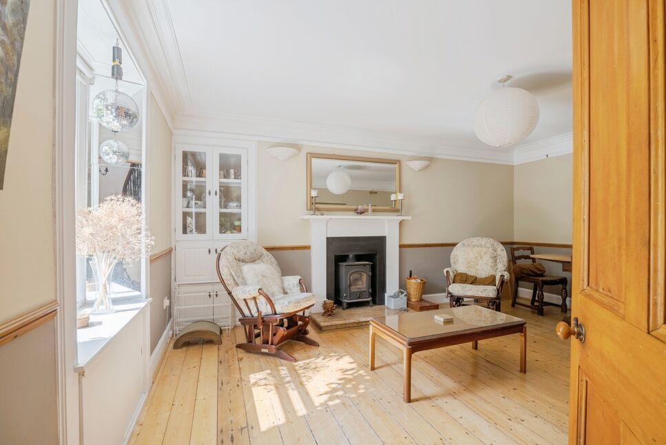 This versatile ground-floor room offers generous proportions and flexible use to suit your lifestyle. Whether used as a spacious double bedroom, a second living room, or a formal dining area. A charming log burner serves as a cosy focal point. The room also features a built-in cabinet for convenient storage or display. With its adaptable layout and characterful touches, this space is ideal for a variety of needs.