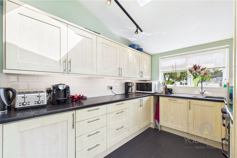As you enter the property, you are greeted by a spacious hallway giving access to all areas of the house. A versatile living area is situated at the front aspect and the kitchen and a further living area are at the rear. There is a convenient storage space and downstairs cloakroom that has a door to the driveway. The L shaped kitchen has plenty of cupboard space, with wall and base-mounted units, a separated utility area and is complete with skylights. This follows on to a cosy living area that has double doors overlooking the garden.