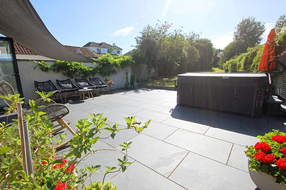 The front garden provides off street parking, has a raised flower/shrub bed and gated access to the side and rear garden. There is a large, established garden to the rear which enjoys a westerly aspect. There is a slate seating area, lawn, a secondary stone paved seating area, storage shed and a variety of mature shrubs. external power point, outside water tap.