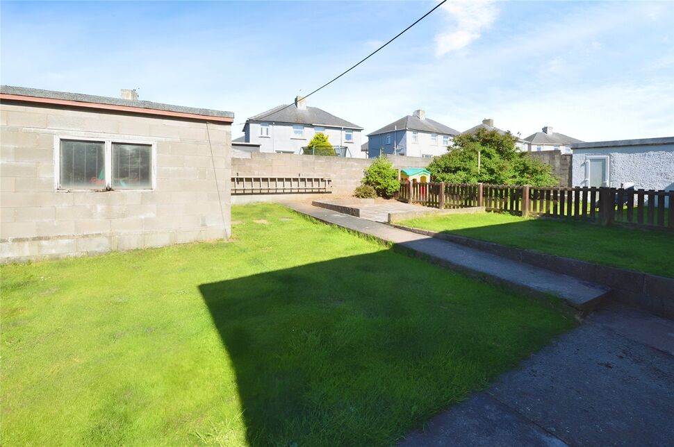 The rear gardens laid to lawn with two patio areas and storage shed. The front garden laid to lawn.