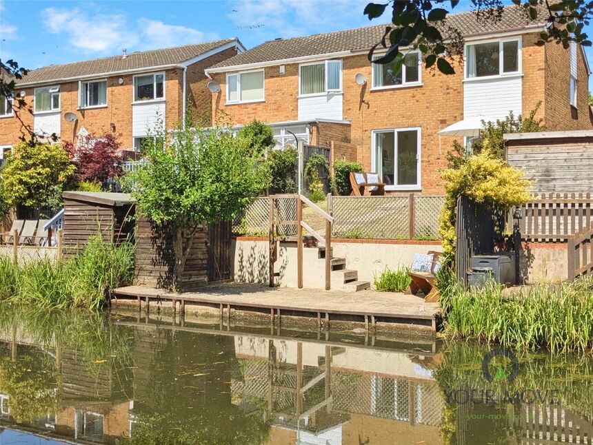 An attractive feature of the accommodation on offer is that the rear garden backs onto the Grand Union canal with mooring space for a small boat with seating area along the water side. There is a paved patio beyond the patio doors onto a lawn leading down to the canal side.