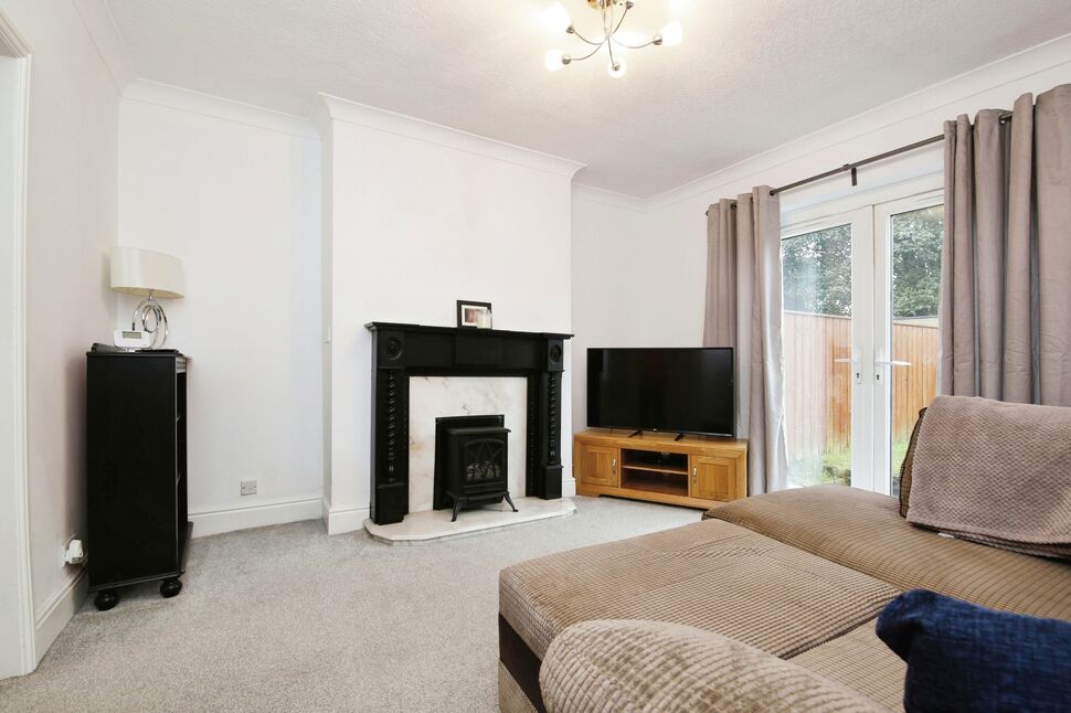 Carpeted flooring, fire with surround and double glazed patio doors leading to the rear garden. Radiator.