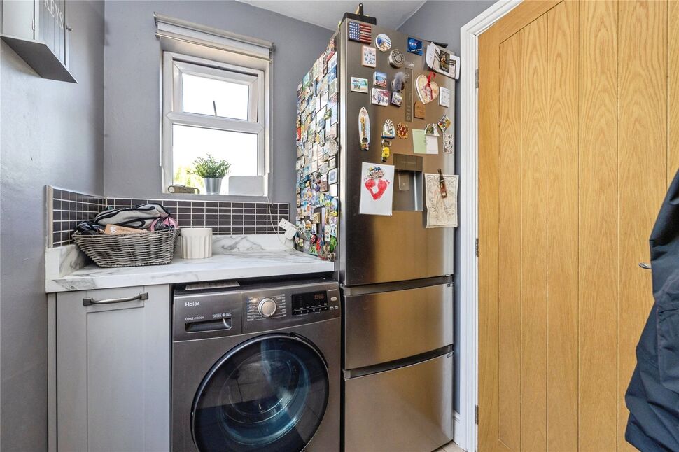 With a double glazed window to the side rear aspect, uPVC door to the side aspect, base units, tiled flooring and space and plumbing for a washing machine.