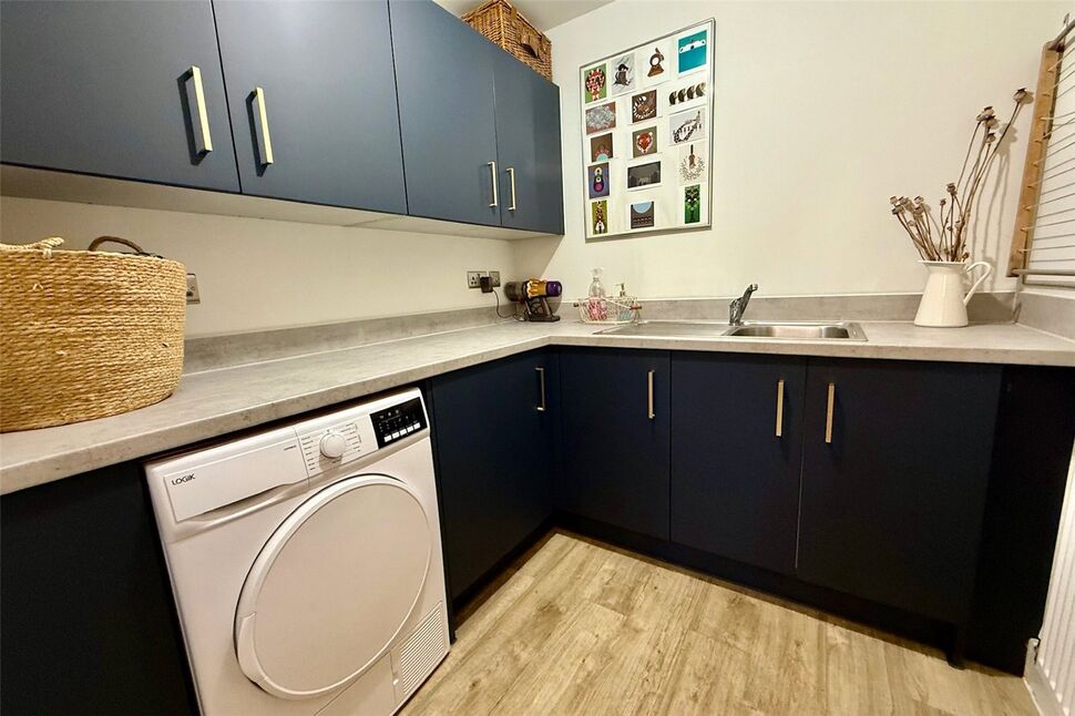Access is gained via a front-facing composite door, leading into the entrance hall. From here, there is access to the first-floor accommodation via a staircase, the integral garage, and the ground-floor utility room. A useful storage cupboard is located beneath the stairs, and the space also benefits from a centrally heated radiator.