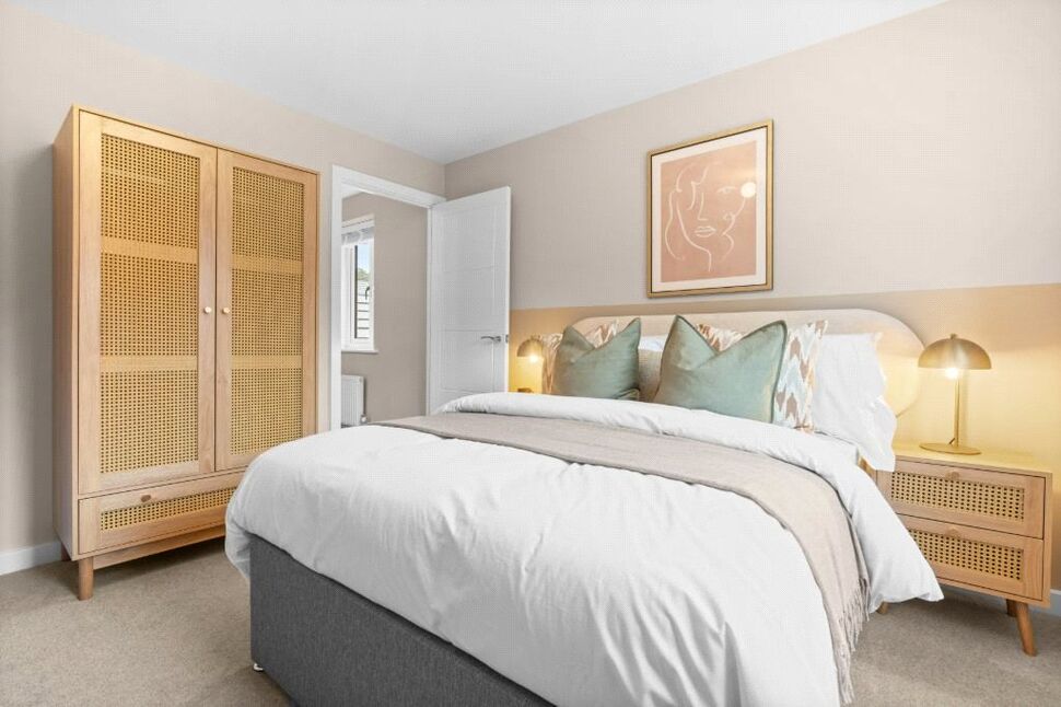 The first floor comprises a spacious primary bedroom with en-suite, along with two more double bedrooms that offer the flexibility for home office use and bedroom space.