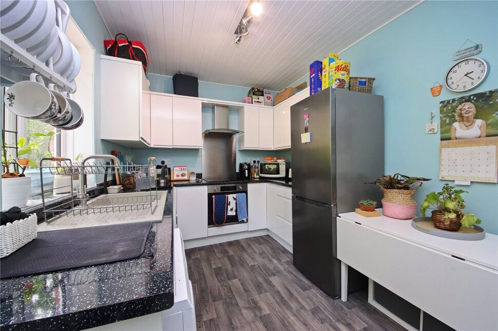 Upstairs, the landing provides access to a partially boarded loft via a fitted ladder and a light. There are three double bedrooms: one large bedroom to the front, and two to the rear, both overlooking the garden. One of the rear bedrooms benefits from one built-in storage cupboards.