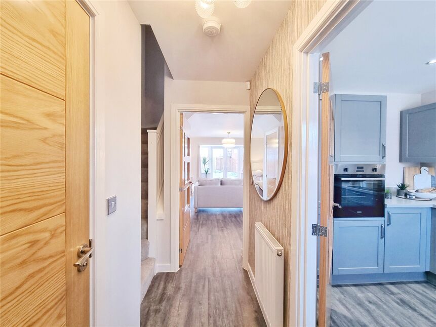 The kitchen is equipped with a range of soft-close base and wall units, and incorporates an integrated single oven, cooker hood and gas hob. There is also a w/c to the ground floor.