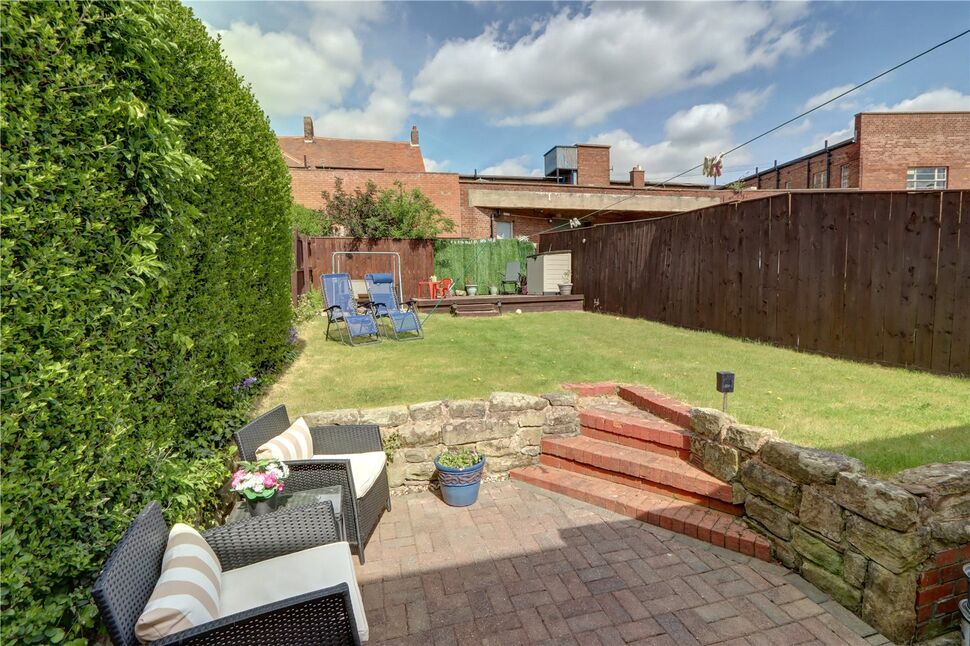 To the rear there is a garden with a raised decking area perfect for dining, a patio seating area and a lawned garden. To the front there is a driveway.