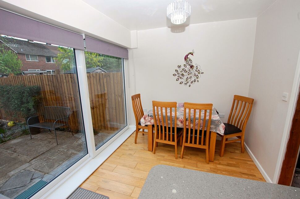 PVCu double glazed sliding doors to the rear garden, PVCu double glazed window to rear, wood flooring, radiator and a built in under-stair storage cupboard. The kitchen is fitted with a modern range of 'High gloss' base and eye level wall units with contrasting Quartz work-surfaces. Recessed one and a half bowl sink unit, built in double oven, inset gas hob, integrated dishwasher and space for a fridge/freezer.