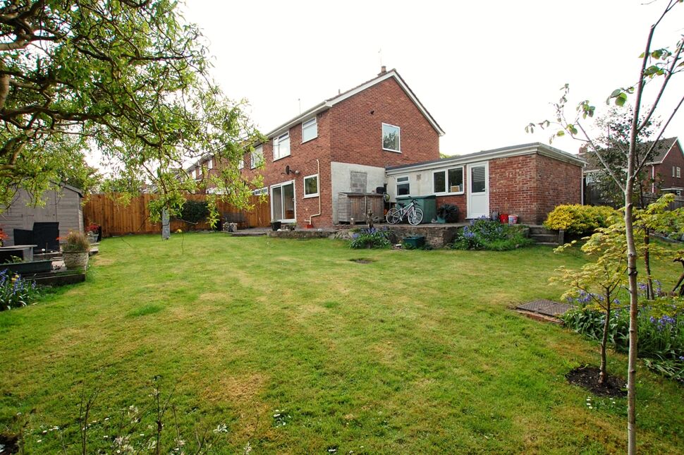 The front garden is largely gravelled to provide off street parking for several vehicles. There is an area of lawn with flower/shrub border and gated access to the side and rear garden. There is a substantial area of garden to the rear which extends to the side that is enclosed by timber fencing and predominantly laid to lawn. Timber built storage shed and a variety of shrubs and trees.