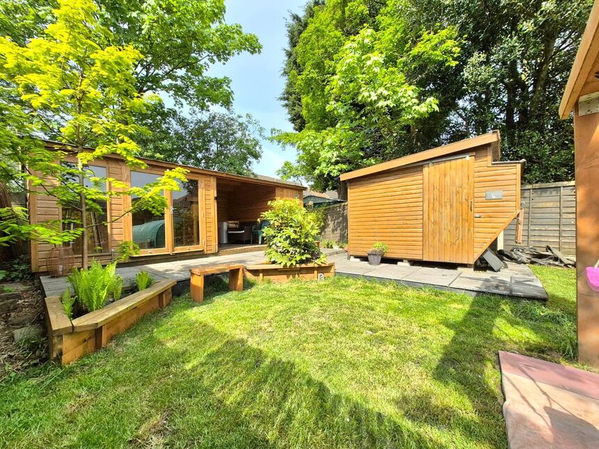 The rear garden is a particular feature of this property, it features a patio and lawn along with a number of established trees and shrubs. There's also a summer house and outdoor bar with electric power and light - perfect for entertaining.