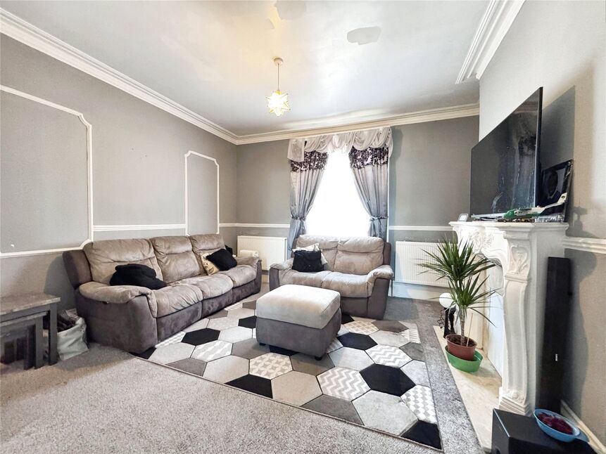 The property boasts three bedrooms and three bathrooms. Both the first and second bedrooms are of a generous double size, offering ample space for relaxation. The property has not one, but two reception rooms, the first of which is adorned with large windows, inviting an abundance of natural light into the space and creating a bright and welcoming environment.