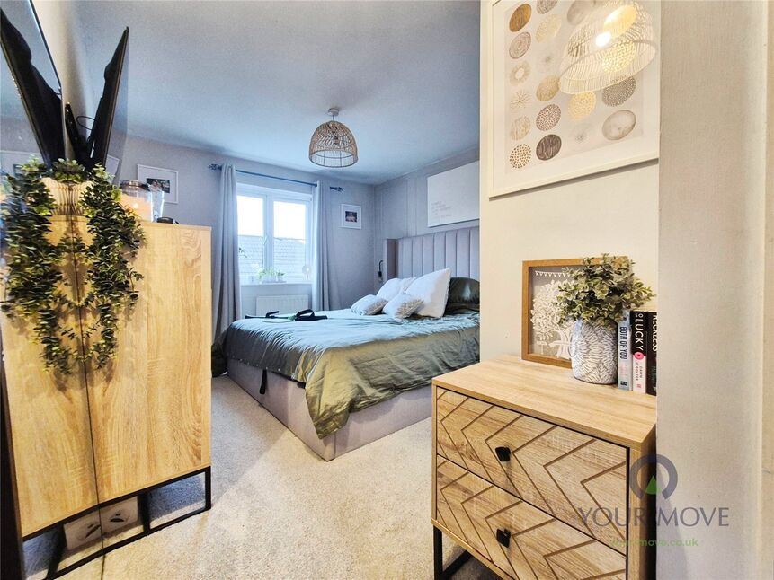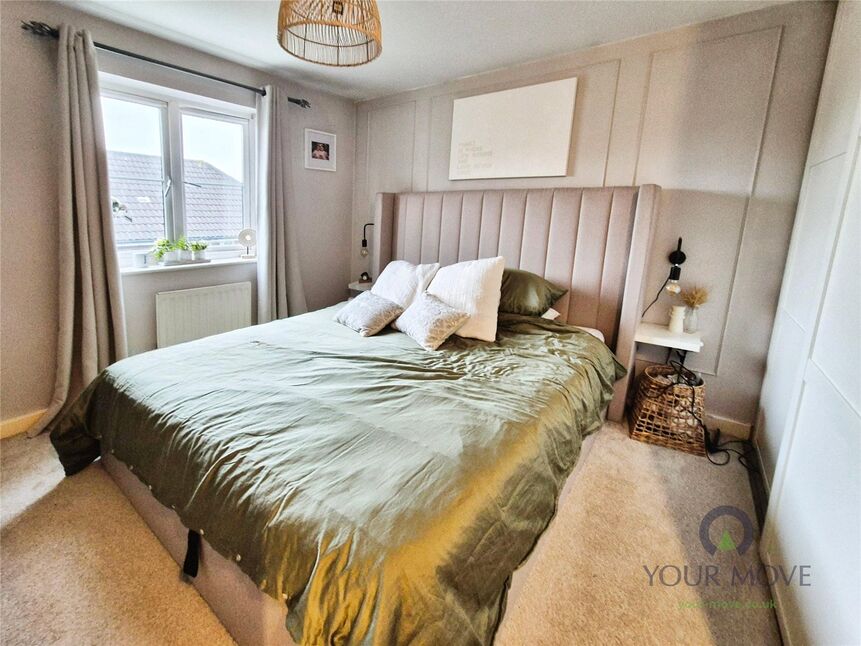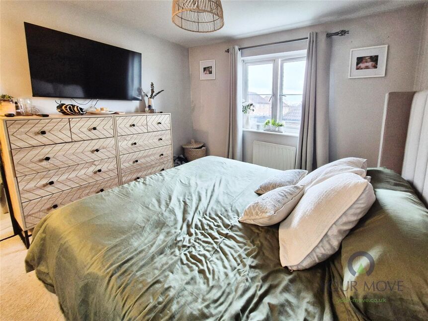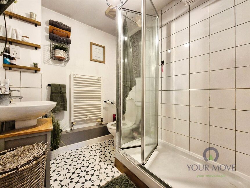 The property boasts three well-appointed bathrooms. The main bathroom features a heated towel rail and a bath with an overhead shower. The property also benefits from a convenient ensuite bathroom and a downstairs WC, ensuring a smooth-running household.