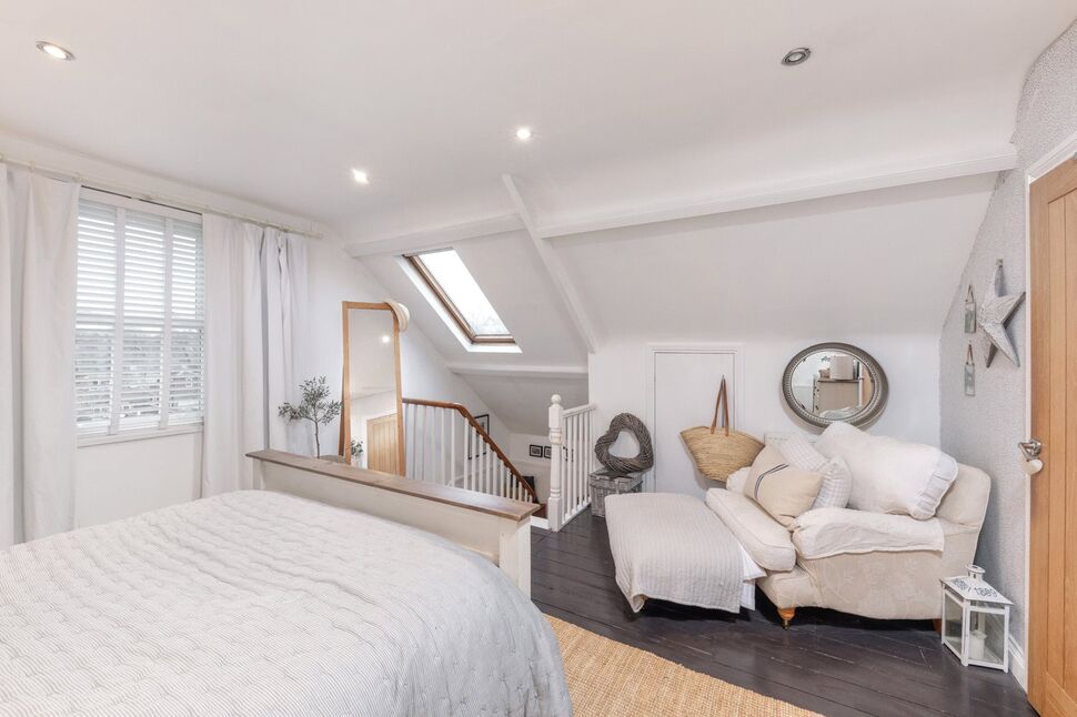 To the first floor, the landing leads to two good-sized double bedrooms, a single bedroom/study and a family bathroom with a stylish free-standing bath and a shower cubicle with dual-head mains-fed shower. Stairs lead up from the landing to the beautifully designed master bedroom suite on the second floor, which has painted floorboards, a walk-in wardrobe, eaves storage and an en suite shower room with a Velux window.