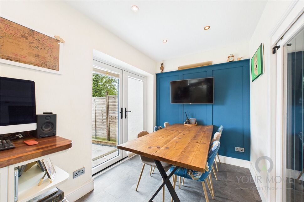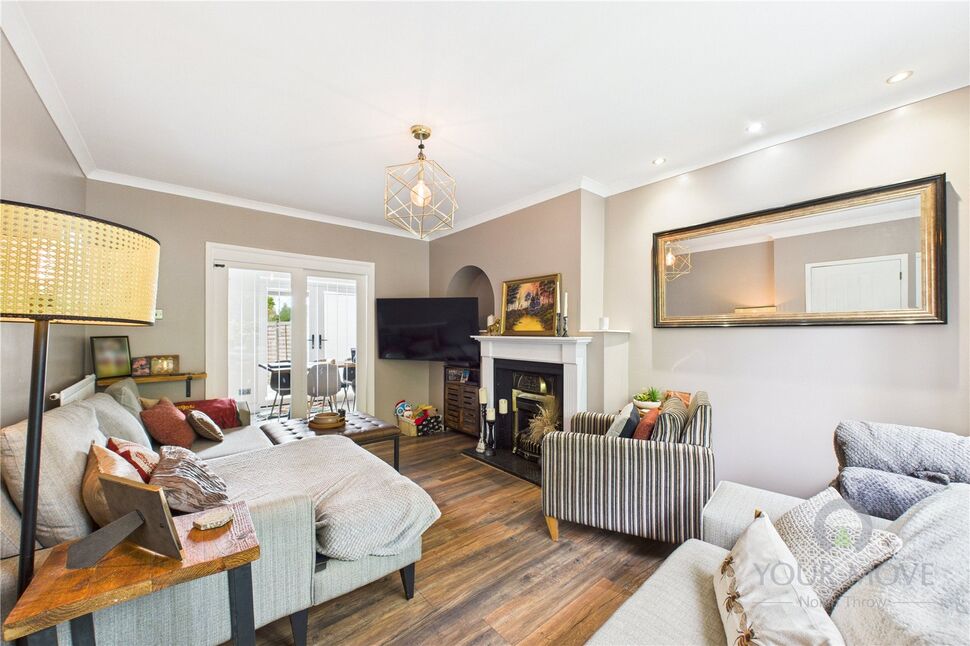 On entering the property via the front door, you are greeted with a spacious hallway that gives access to all areas of the home. The cosy living room is situated at the front and features spotlights, alcove storage and a feature fireplace. The large L-shaped kitchen/diner overlooks the rear and also features a separate utility space and pantry. The newly fitted kitchen contains both base and wall mounted units, wooden worktops and a belfast sink, integrated dishwasher and range oven with a feature chimney breast extractor hood. The dining area has plenty of space for furniture and overlooks the rear garden via upVC double doors.