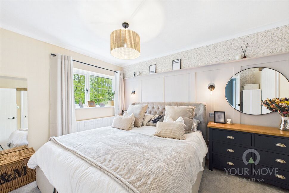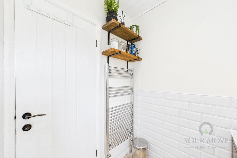 Leading upstairs, via the open-plan hallway, there are three good-sized bedrooms that all accommodate double beds as well as the family bathroom. Two of the bedrooms have fitted wardrobe space and overlook the front and rear. The beautiful family bathroom features a three piece suite with a crittall panel as well as a vanity unit. The main bedroom spans the length of the house and boasts panelling, wall sconce lighting and a sliding door to the en-suite. The en-suite has dual windows and has been lovingly fitted to feature character tiles, a double shower and vanity unit and is spotlighted throughout.